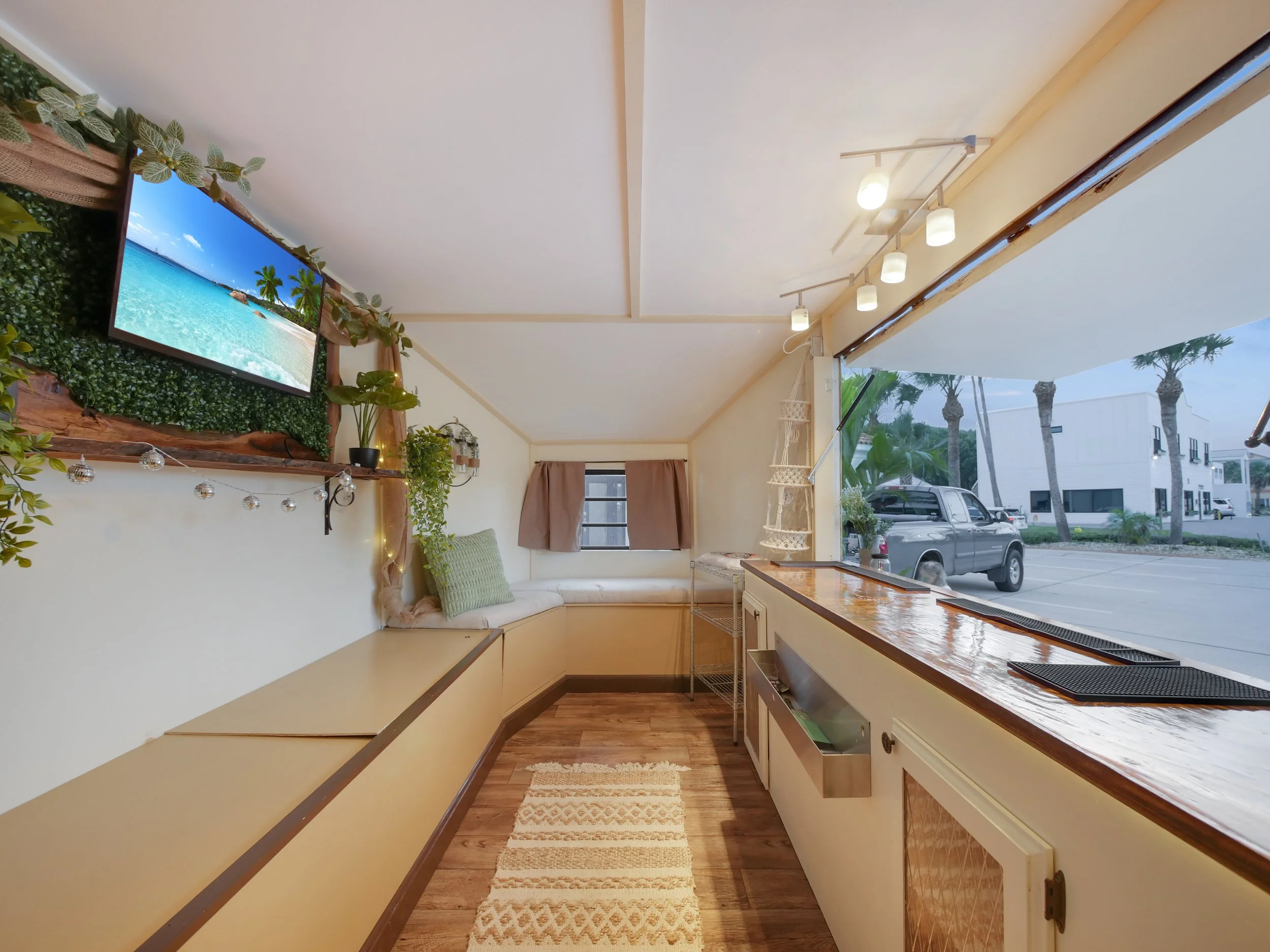 We knew we wanted to start our own business together. After years of working in the hospitality industry and seeing our old boat trailer getting no use; we decided it would be a fun task to create our own mobile bar from the ground up! Completely hand-built by us, we are so excited to share it with you. You will find no trailer like The Mainsail anywhere else. We have lights, a sink with running water, a TV, LED bar lights, plenty of storage, and a lounge area. The Mainsail also has transitional space so we can accommodate kegs upon request.